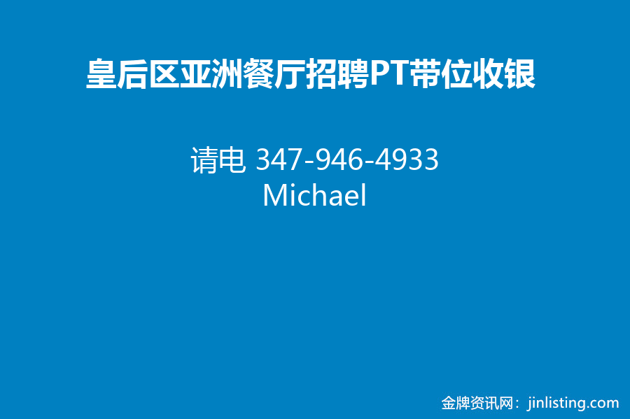 皇后区亚洲餐厅招聘 (Part Time)带位/收银。请电Michael 347-946-4933