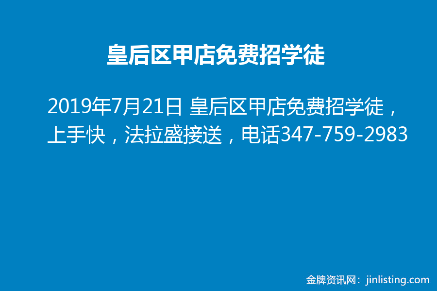 皇后区甲店免费招学徒,上手快,法拉盛接送,电话347-759-2983