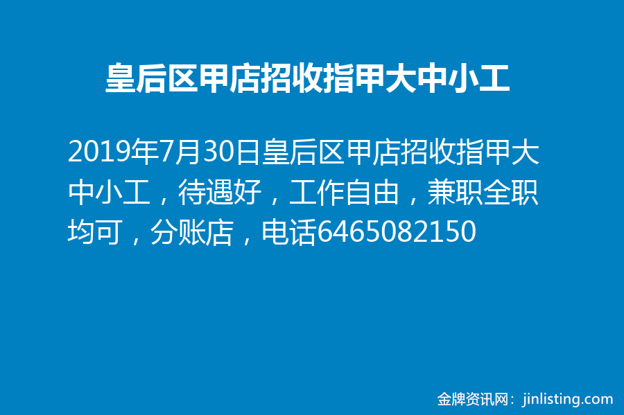 皇后区甲店招收指甲大中小工,待遇好,工作自由,兼职全职均可,分账店,电话6465082150