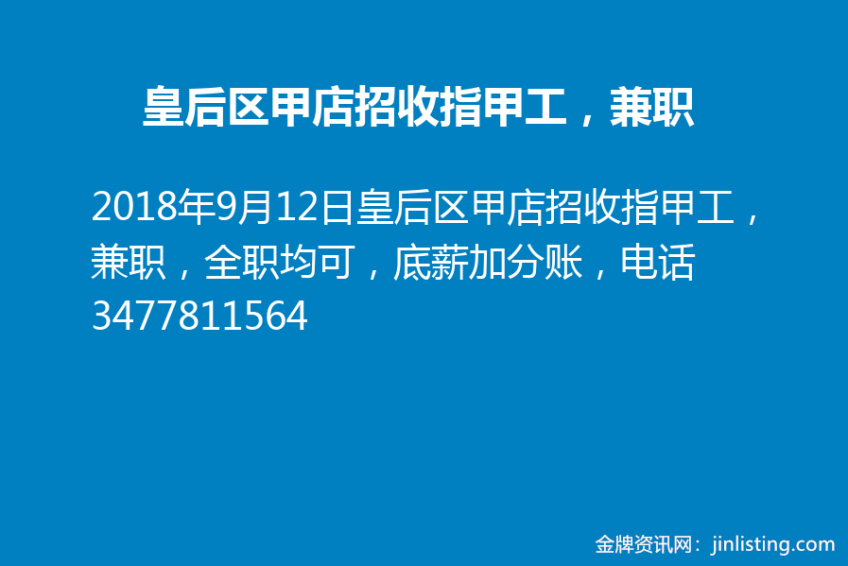 皇后区甲店招收指甲工,兼职,全职均可,底薪加分账,电话3477811564