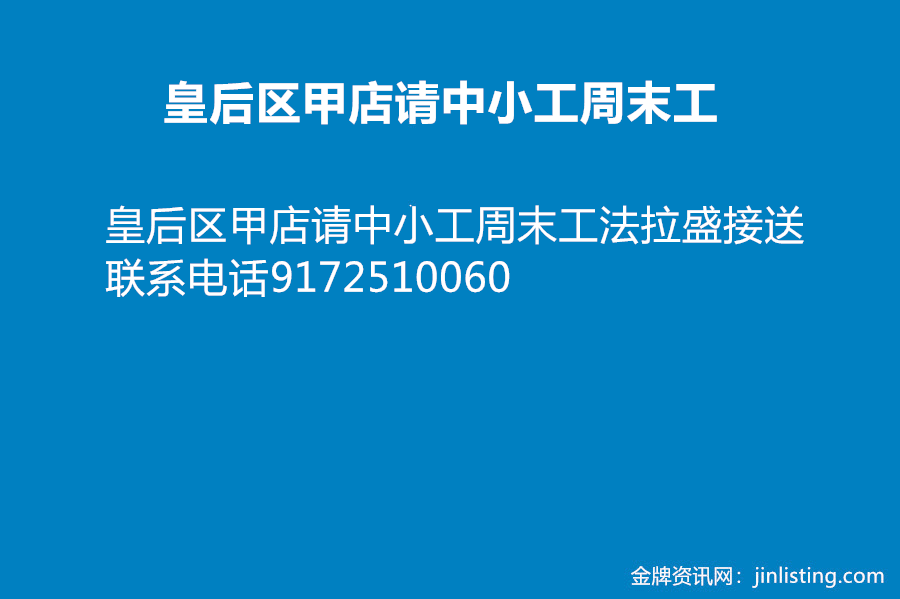 皇后区甲店请中小工周末工法拉盛接送联系电话9172510060