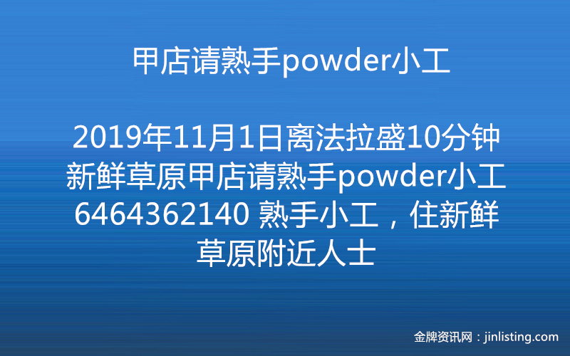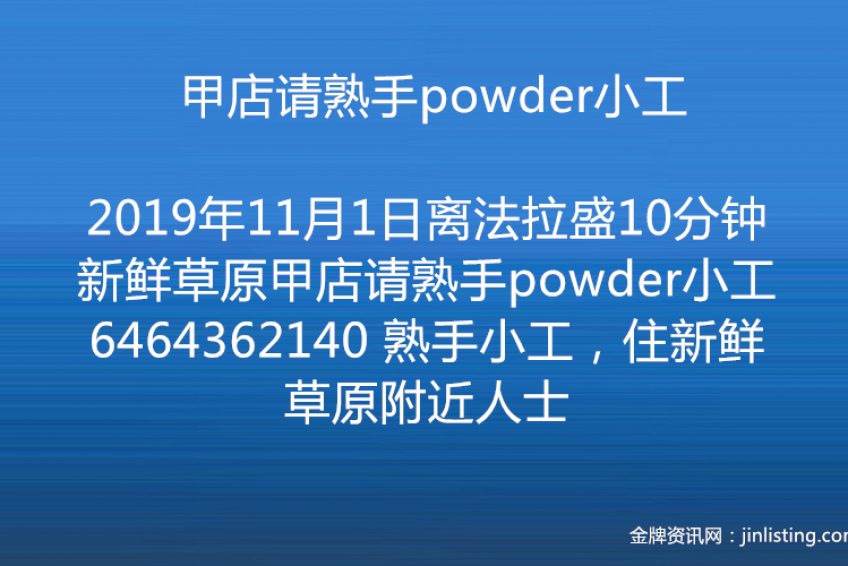 离法拉盛10分钟新鲜草原甲店请熟手powder小工6464362140 熟手小工,住新鲜草原附近人士