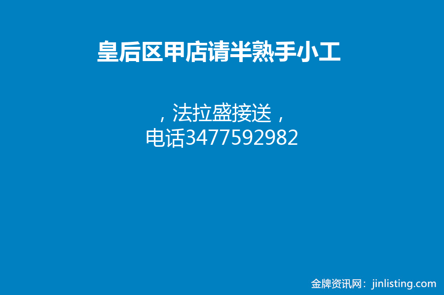 皇后区甲店请半熟手小工 3477592982