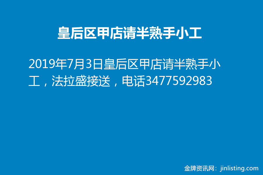 皇后区甲店请半熟手小工,法拉盛接送,电话3477592983