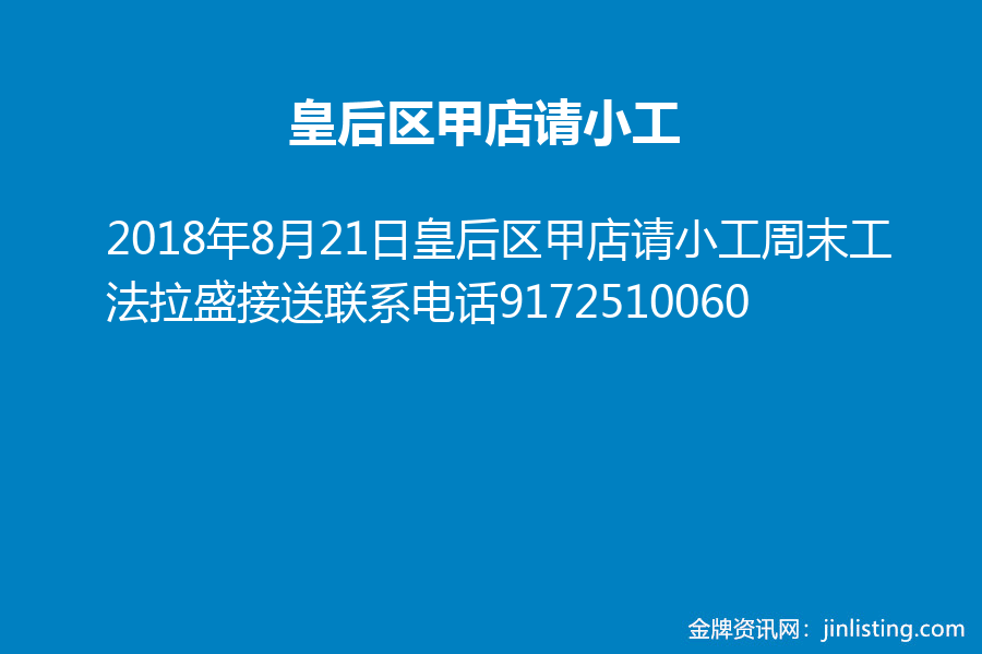 皇后区甲店请小工周末工法拉盛接送联系电话9172510060