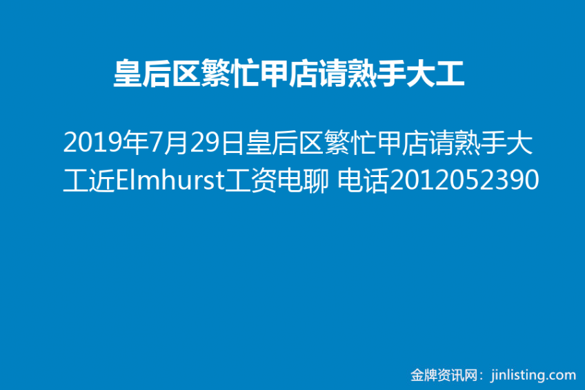 皇后区繁忙甲店请熟手大工 2012052390