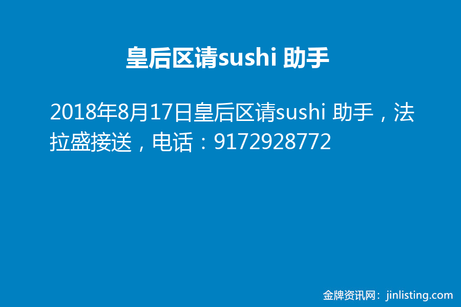 皇后区请sushi 助手,法拉盛接送,电话:9172928772