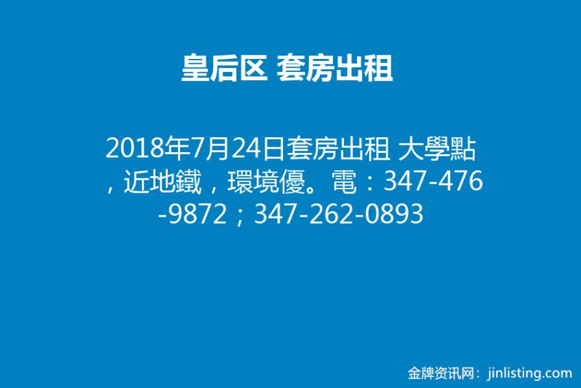 套房出租 大學點,近地鐵,環境優。電:347-476-9872;347-262-0893
