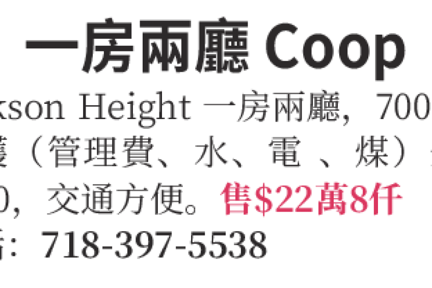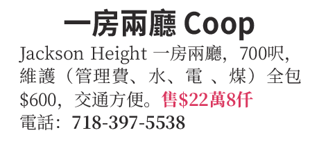 皇后區一房兩廳 Coop