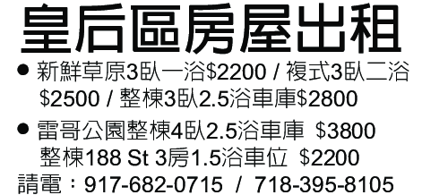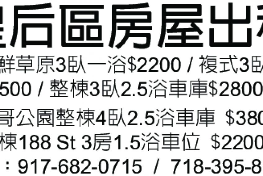 新鮮草原3臥1浴2200複式3臥2浴2500整棟3臥2.5浴車庫2800雷哥公園整棟4臥2.5浴車庫3800整棟188 St 3房1.5浴車位2200