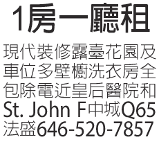 現代裝修露臺花園及車位多壁櫥洗衣房全包除電近皇后醫院和St. John,F 中城Q 65 法拉盛電646-520-7857