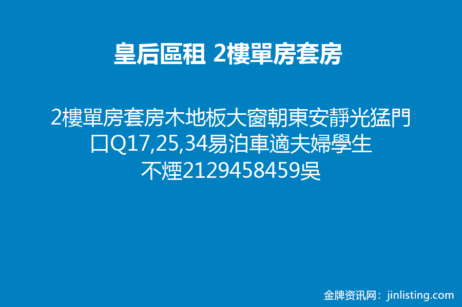 2樓單房套房木地板大窗朝東安靜光猛門口Q17,25,34易泊車適夫婦學生不煙2129458459吳