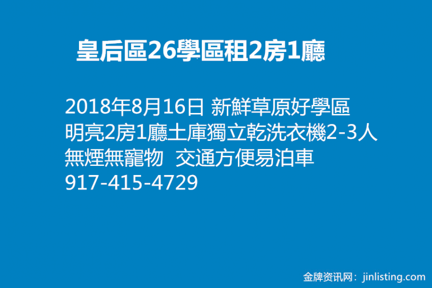 新鮮草原好學區明亮2房1廳土庫獨立乾洗衣機2-3人無煙無寵物交通方便易泊車 917-415-4729