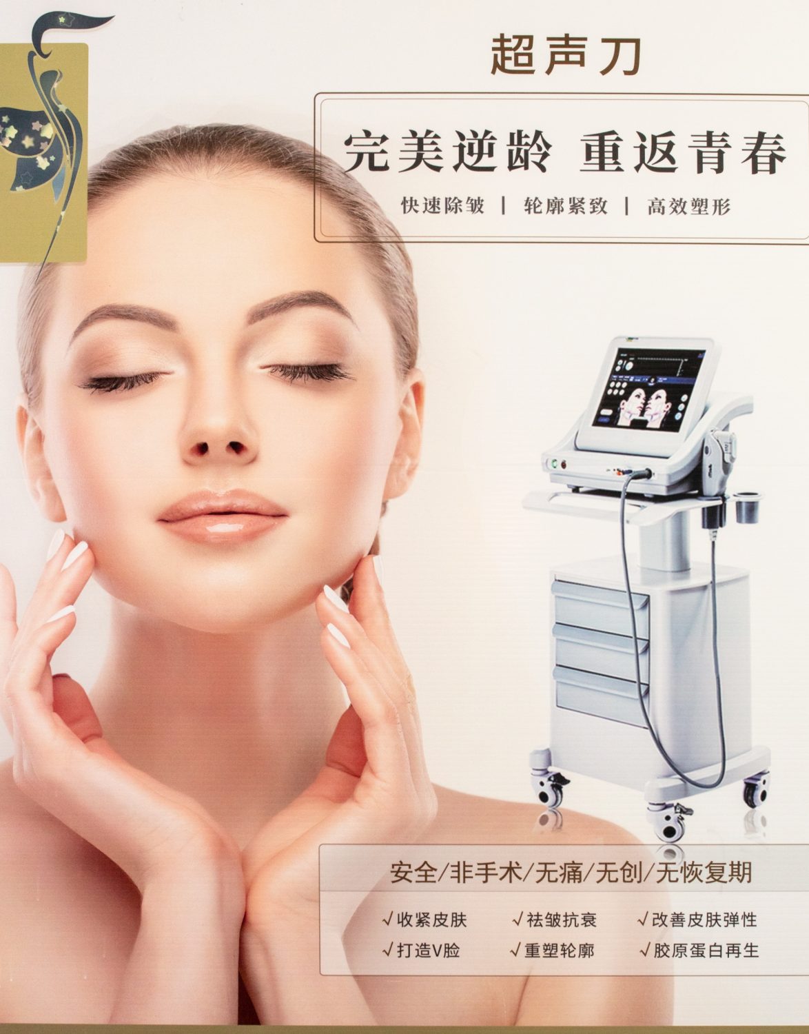 贵妃容颜定制中心引进超声刀美容仪器,快速除皱,紧致脸部轮廓,收紧皮肤,高效塑形,打造V脸。