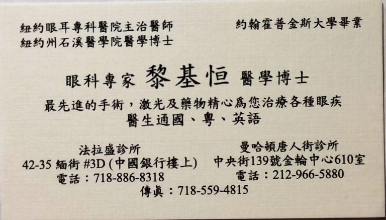 紐約眼耳專科醫院主治醫師 約翰霍普金斯大學畢業 紐約州石溪醫學院醫學博士 眼科專家黎基亘醫學博士 最先進的手術 … 继续阅读眼科专家黎基亘医学博士718-886-8318