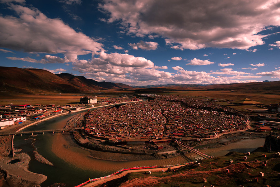 觉姆岛位于四川甘孜藏族自治州白玉县昌台区阿擦乡一处远离尘世的空旷草原上,昌曲河环抱着觉姆岛。这宛如菩提叶的小岛,充满了神秘色彩,令人向往。岛上有两万多间觉姆修行自盖的“小盒子”房,经纬分明的两条小路贯穿整个岛屿。