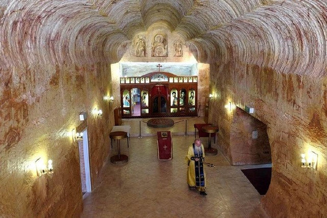 原来这是世界上最热的小镇,夏天气温经常超过40摄氏度,有时可达50摄氏度。同时这里盛产一种七彩宝石,非常漂亮,吸引了世界各地的淘宝者前来挖宝石,挖出了很多洞穴,后来淘宝者发现洞穴内比开空调还凉爽舒适,所以就在地下住了下来,然后在地面连接上通风管道,进行空气循环,便慢慢形成了现在的地下村镇。