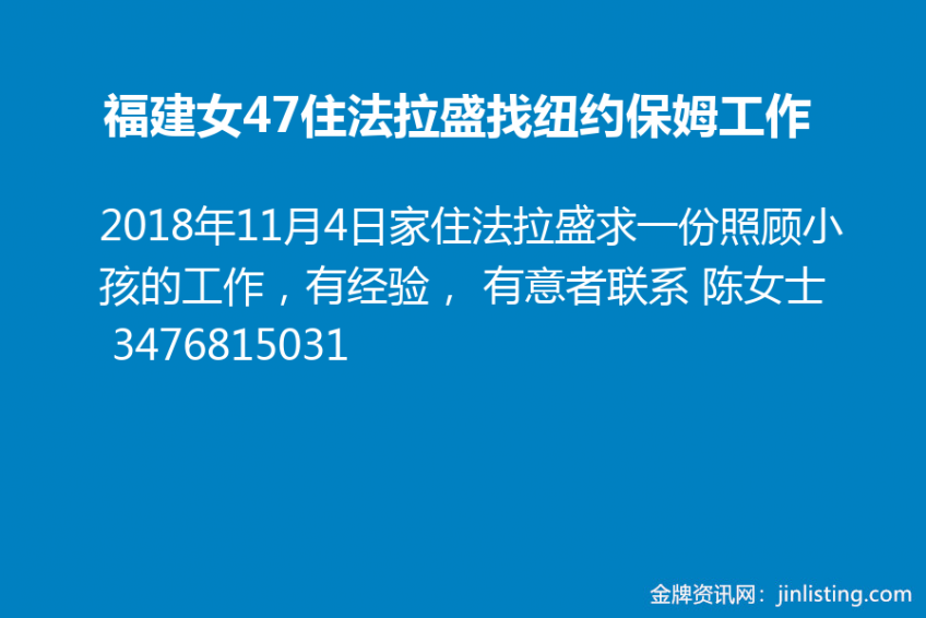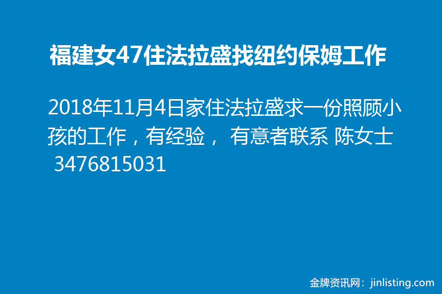 福建女47住法拉盛找纽约保姆工作 3476815031