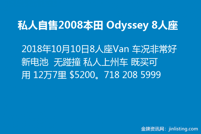 8人座Van 车况非常好 新电池 无踫撞 私人上州车 既买可用 12万7里 $5200。718 208 5999