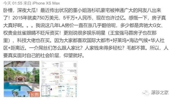 4月26日,新浪网报导,某知名大V发微博爆料董卿2015年在美国洛杉矶出售了750万美元,约5310万人民币的豪宅。从上网上晒出的图片,足见董卿的昔日坐拥的这幢豪宅相气派,露天大泳池,高档欧式别墅,环境非常优美。