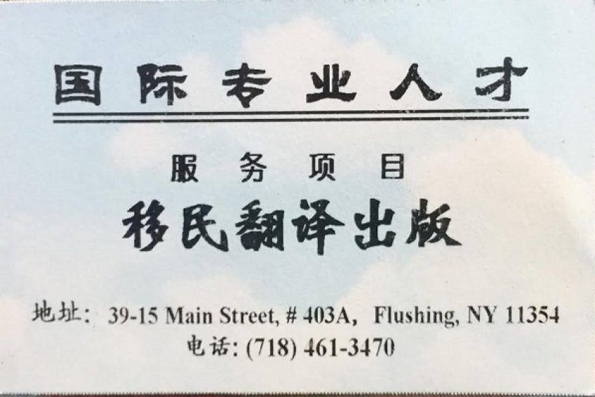 国际专业人才 服务项目移民、翻译、出版 地址:39-15 Main Street,#403A, Flushing, NY 11354 电话:(718) 461-3470