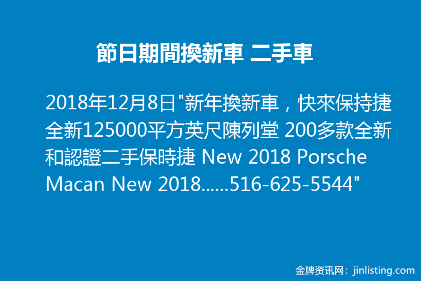 節日期間換新車/二手車,來紐約保時捷車行獲優惠 516-625-5544
