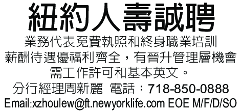 業務代表免費執照和終身職業培訓,薪酬待遇優,福利齊全,有晉升管理層機會,需工作許可和基本英文。分行經理週新麗