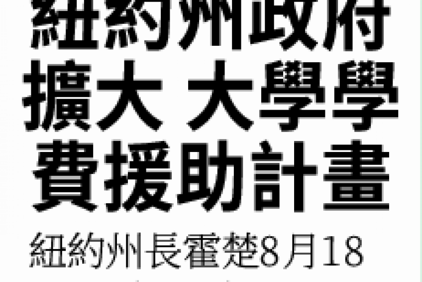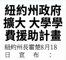 紐約州政府擴大 大學學費援助計畫