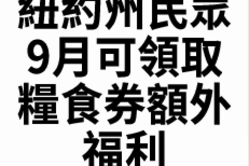 ● 所有領取糧食券福利的紐約州民眾,本月都將領到最高上限金額的福利。