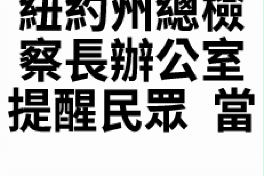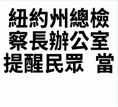紐約州總檢察長辦公室近日向紐約民眾發出警告: