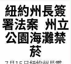 這一新的立法,將在全紐約州範圍的公園、海灘實施,並由各地執行罰款。