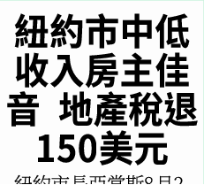 ● 紐約市財政局將向符合退稅資格的房主寄發支票。