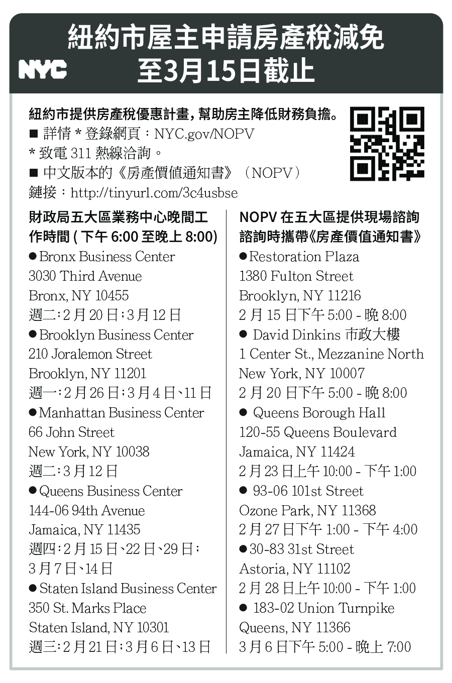 n詳情* 登錄網頁:NYC.gov/NOPV