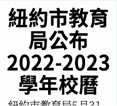 紐約市教育局5月31日公布下一學年(2022-2023)校曆。