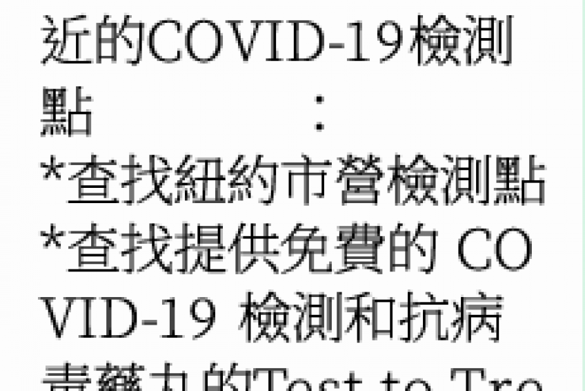 ● 查看 NYC Health + Hospitals COVID-19 檢測站點的完整列表: