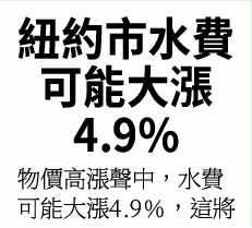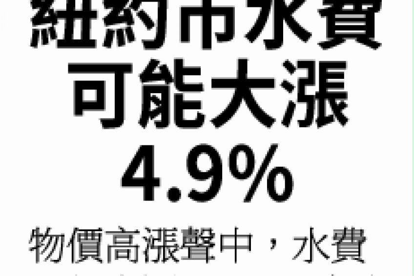 紐約市環境保護局(DEP)4月份提案,將水費提高4.9%。