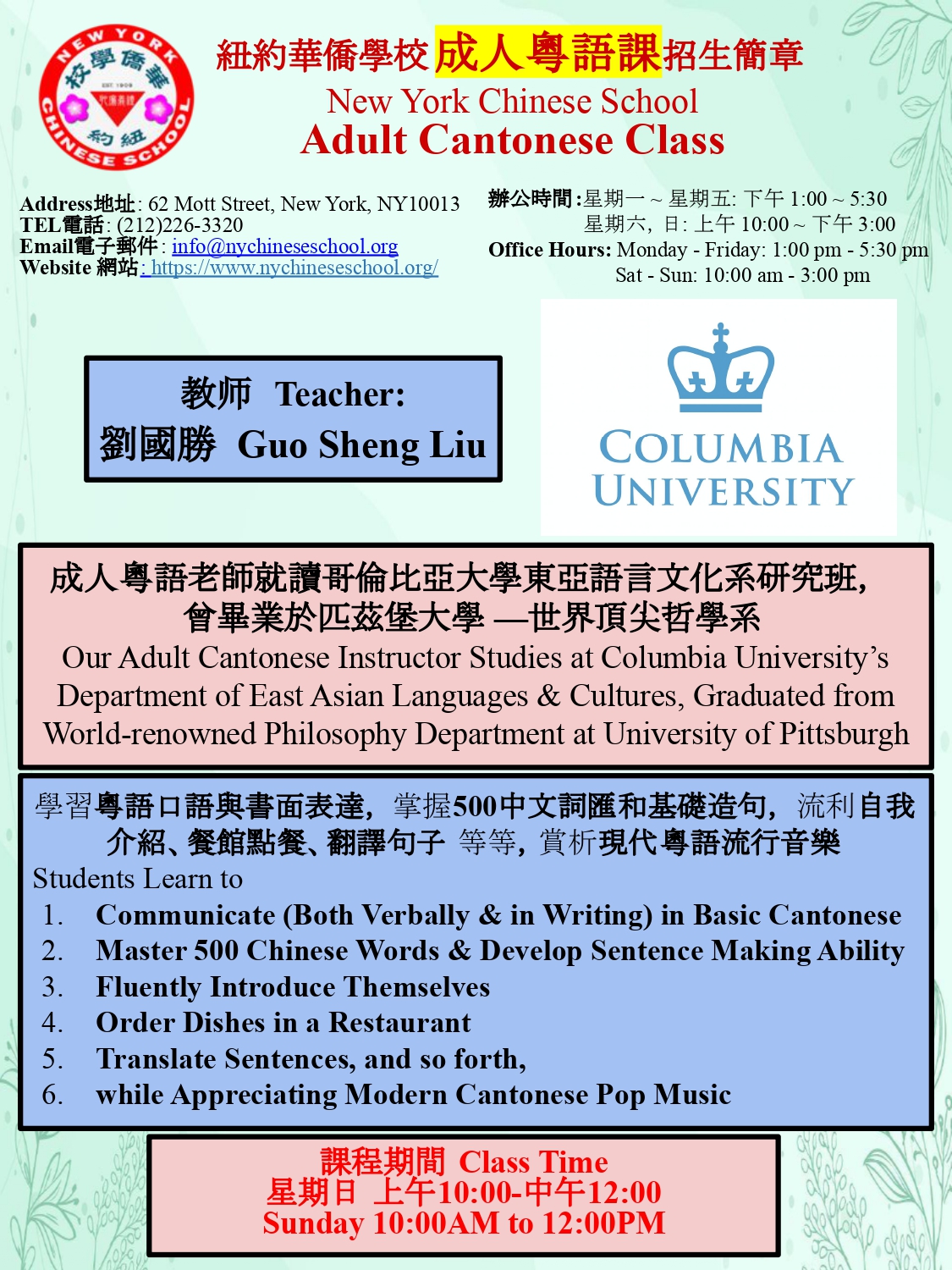 📍 上課地點:紐約華僑學校 62 Mott Street, New York, NY 10013
