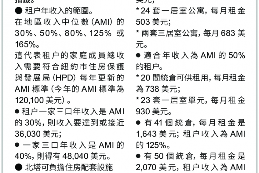 這代表租戶的家庭成員總收入需要符合紐約市住房保護與發展局(HPD)每年更新的AMI標準(今年的AMI標準為120,100美元)。