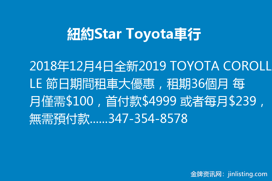 紐約Star Toyota車行,節日期間租車/買車便宜347-354-8578
