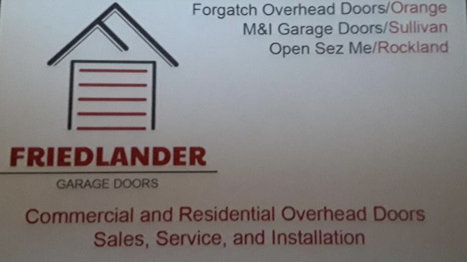 Friedlander Garage Doors 是M&I Garage Door 的分公司,服务于纽约上州的Sullivan縣、Orange縣、Rockland縣。