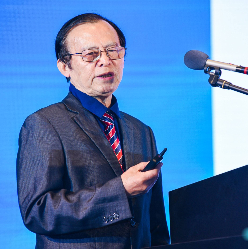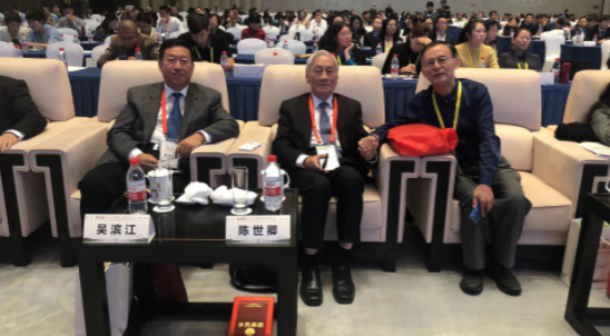 2019/10/26首届世界中医药互联网产业大会上崔志强博士(右)和美国两院院士陈世卿(中)交流