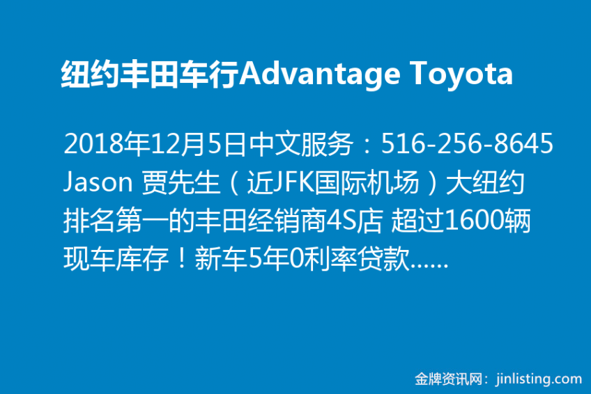 大纽约排名第一的丰田经销商4S店 超过1600辆现车库存!