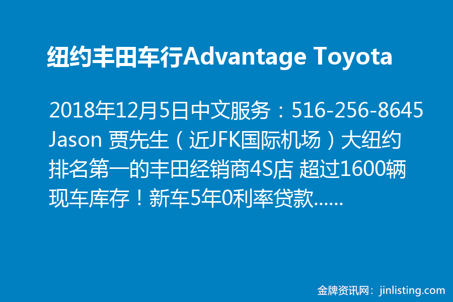 “中文服务:516-256-8645 Jason 贾先生(近JFK国际机场)
