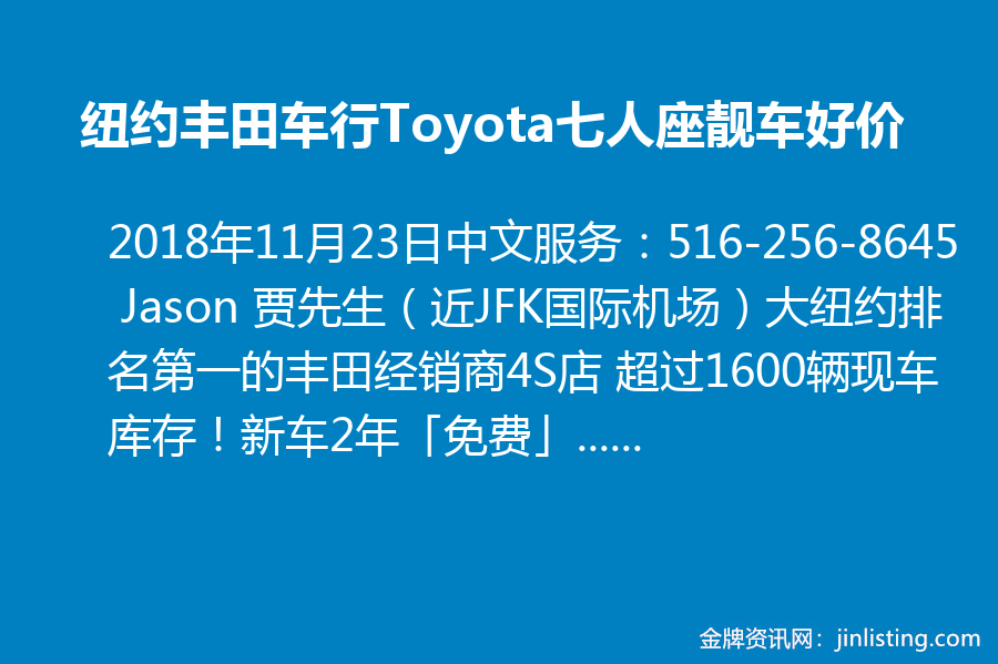 纽约丰田车行Toyota七人座靓车好价 516-256-8645