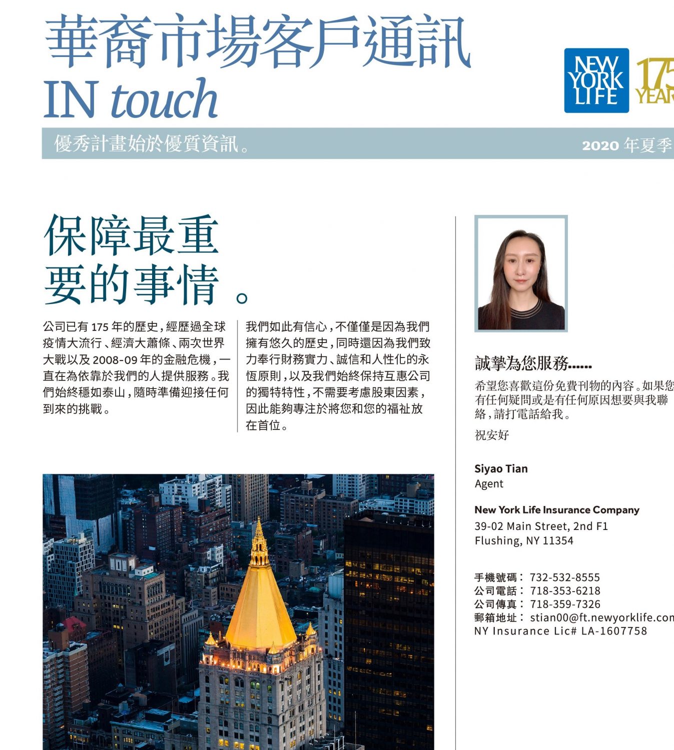 今年是纽约人寿保险公司成立175周年!您和您的家庭需要更多保障!