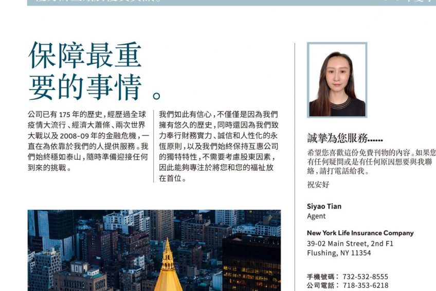今年是纽约人寿保险公司成立175周年!您和您的家庭需要更多保障!