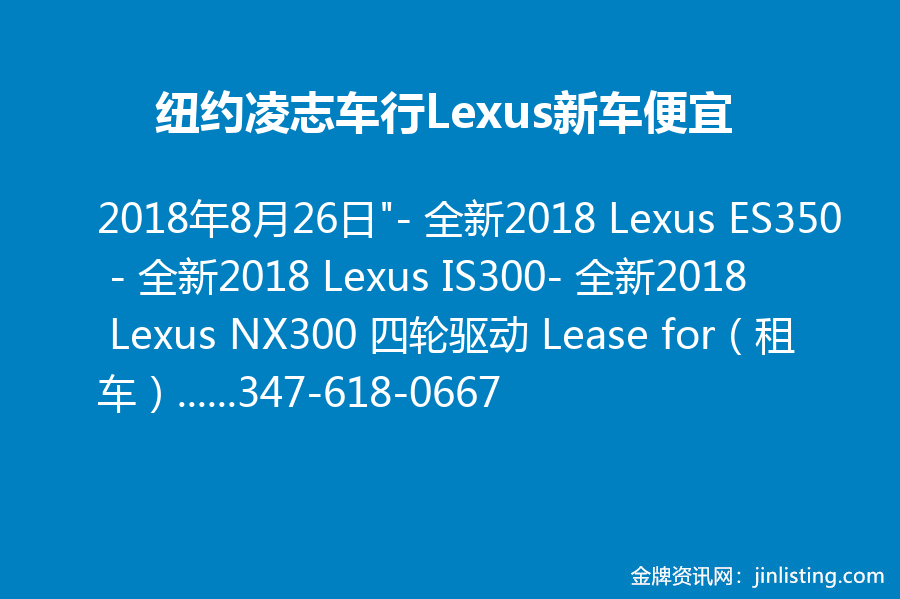 纽约凌志车行Lexus新车便宜 347-618-0667