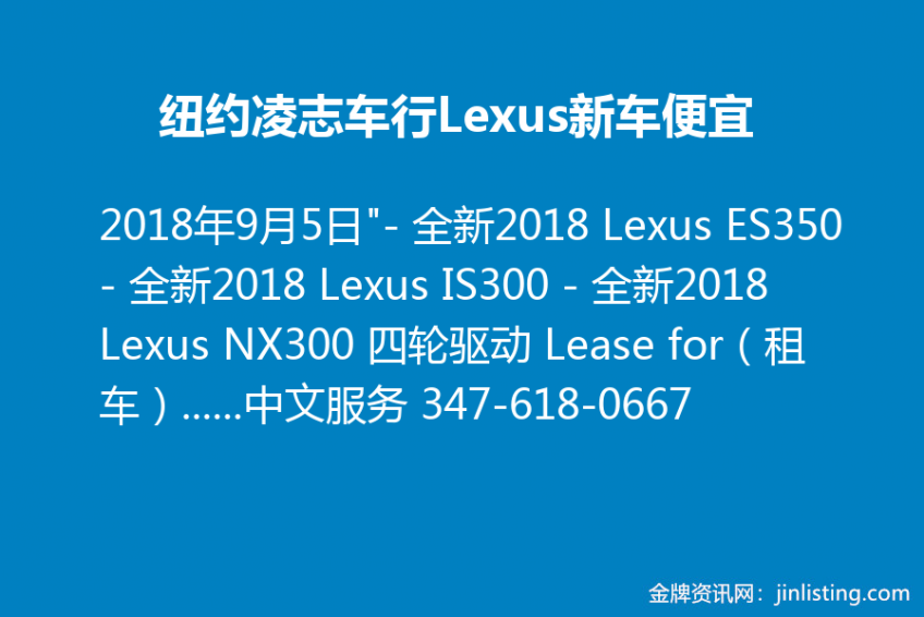 纽约凌志车行Lexus新车便宜 347-618-0667