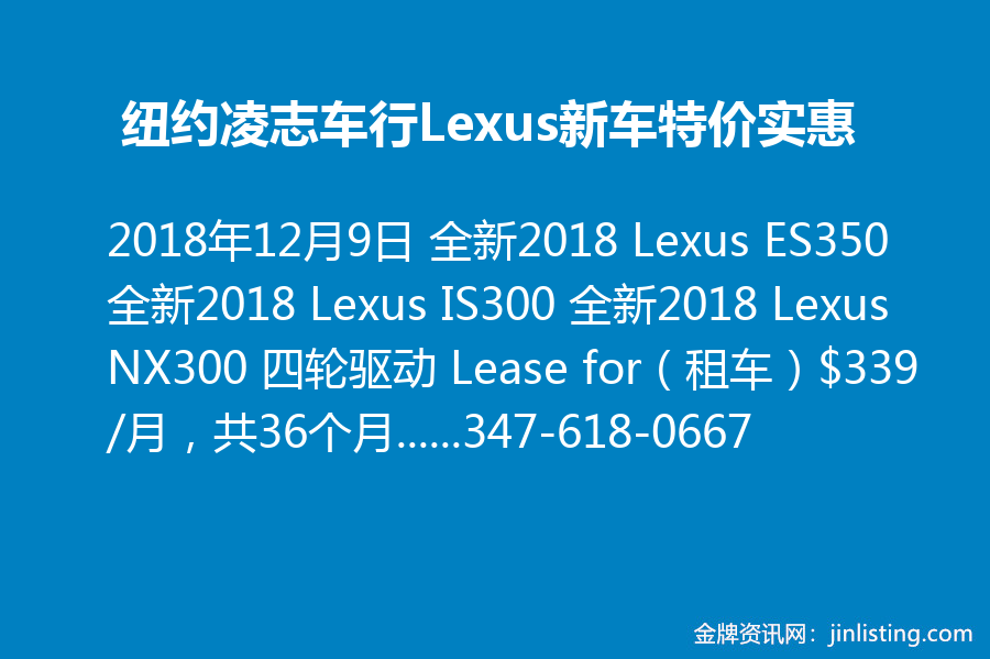 纽约凌志车行Lexus新车特价实惠 347-618-0667