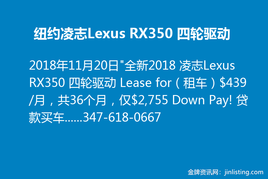 纽约凌志Lexus RX350 四轮驱动:347-618-0667